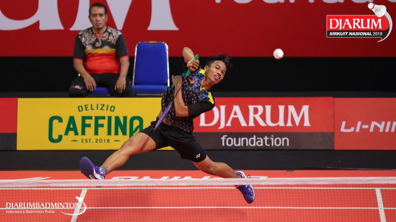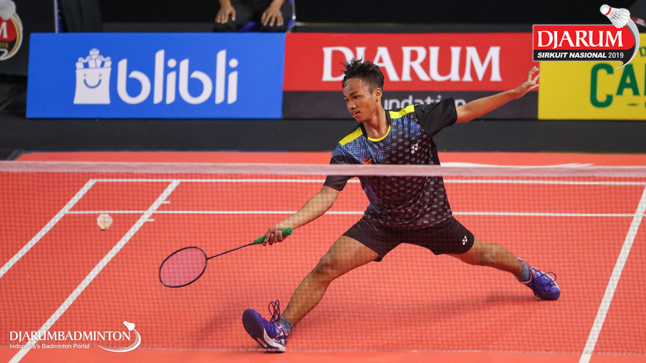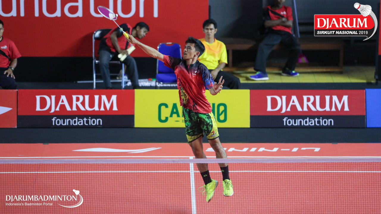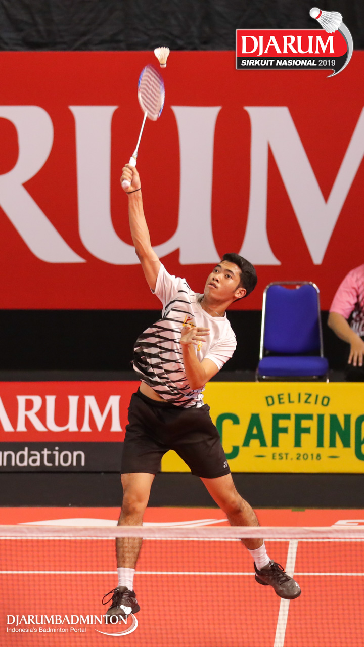 Andika Ferdiaz (PB. Rudy, Mataram) menyambut shuttlecock