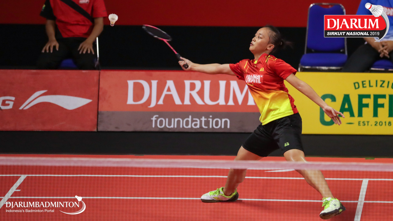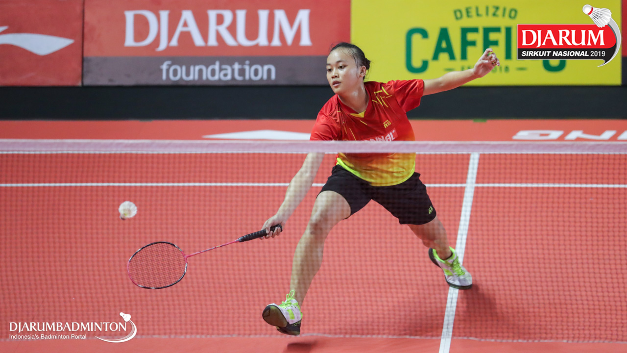 Valenska Karunia Salsyahbillah (PB. Gemilang, Mataram) menyambut shuttlecock