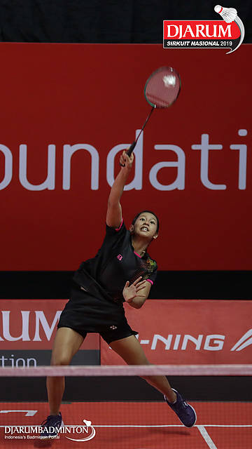 Debora Pungky Cahyadewi (PB. Inti Badminton Club Klaten) menyambar pengembalian
