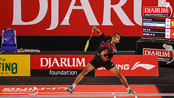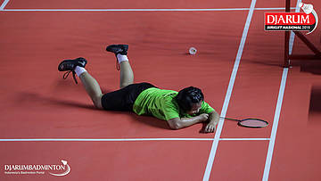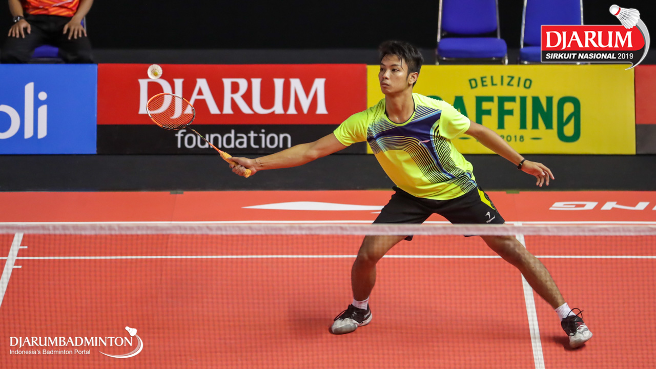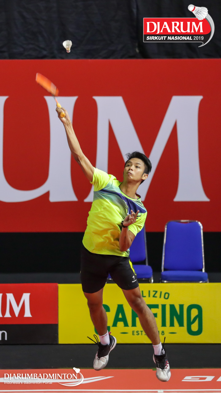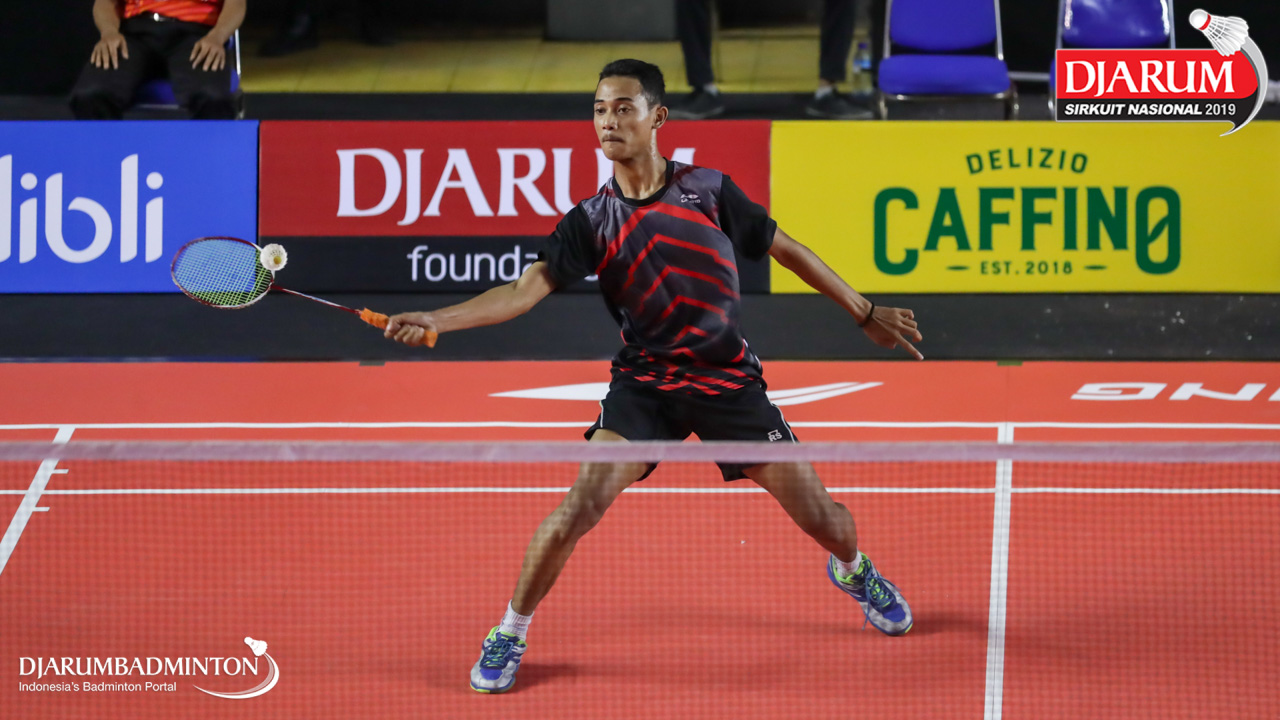 Huzil Fahrul Afwan (PB. Rudy, Mataram) menyambut shuttlecock