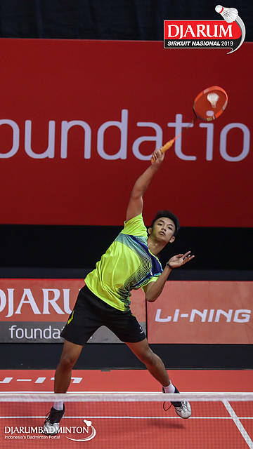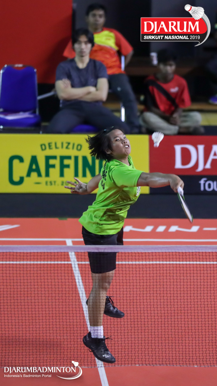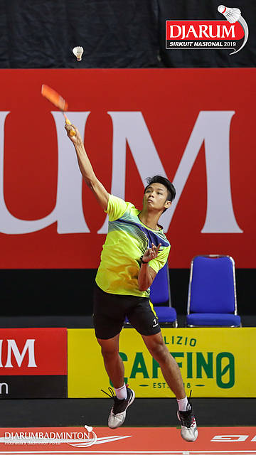 Jovi Michael (Focus Badminton Club, Jaksel) menyambar pengembalian