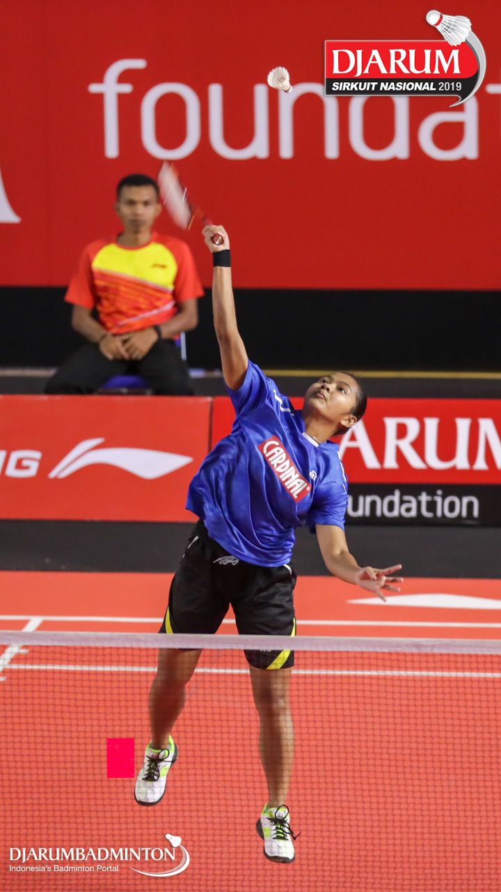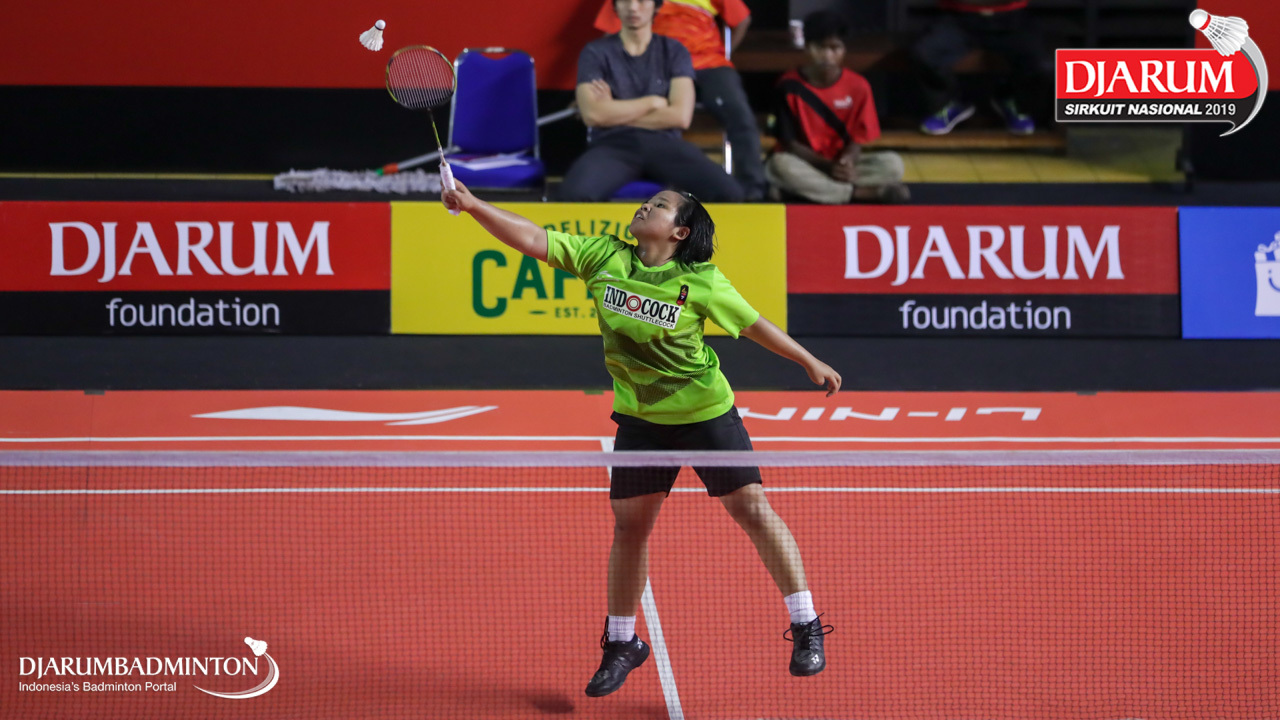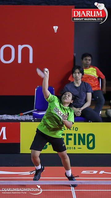 Elok Machsunnah (Bayu Kencana, Pasuruan) bersiap menyambar shuttlecock