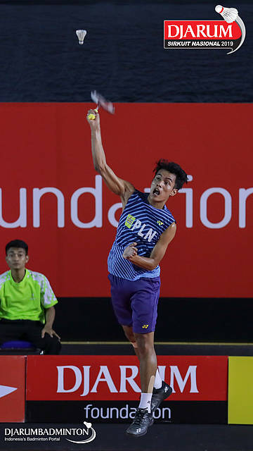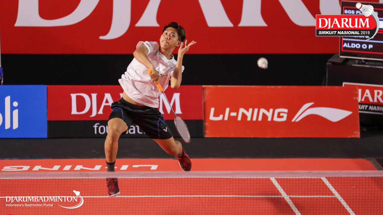 Aldo Oktaviano Purnomo (Sakura Badminton, Sby) melepaskan serangan