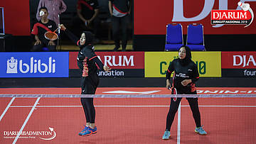 Nadiya Melati+Tiara Rosalia NURAIDAH (Pertamina Fastron, Jakut) bersiap menyambut shuttlecock
