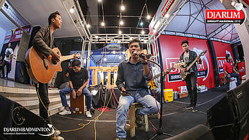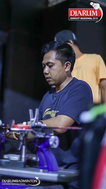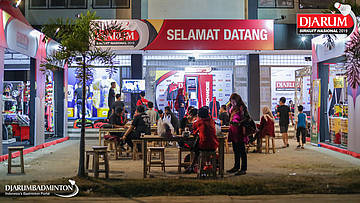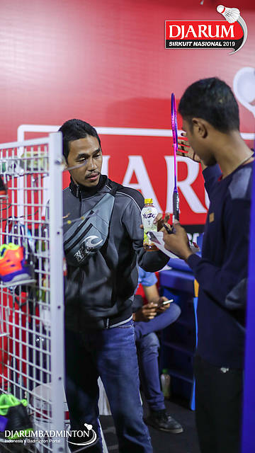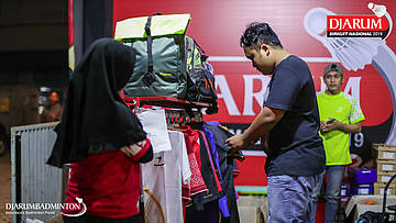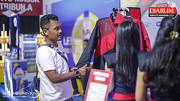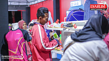 Dua orang pengunjung saat memilih raket di booth Flypower