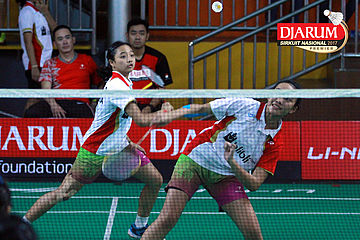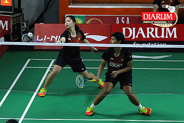 Aldira Rizki/Fauzia Kartikasari (Djarum Kudus) Mengembalikan Shuttlecock