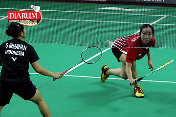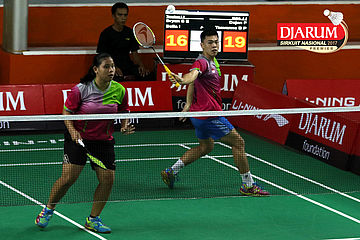 Bryan Sydney/Bella Irianti (Tangkas Intiland) Mengembalikan Shuttlecock