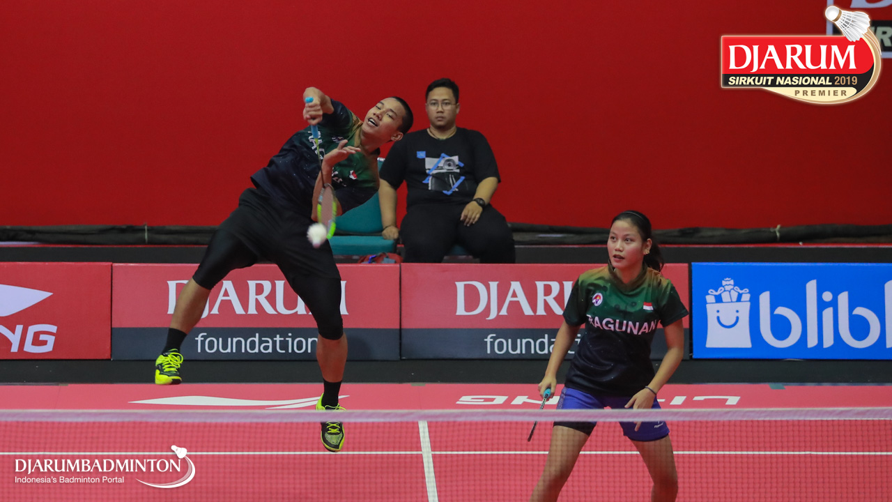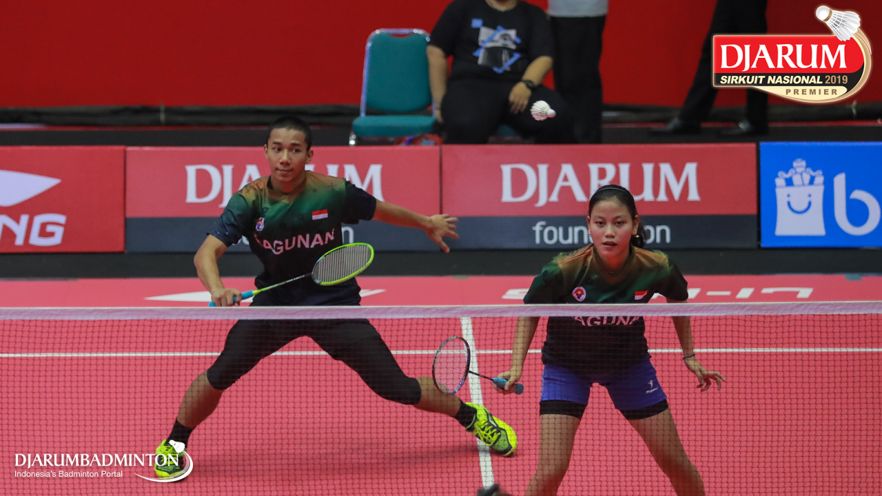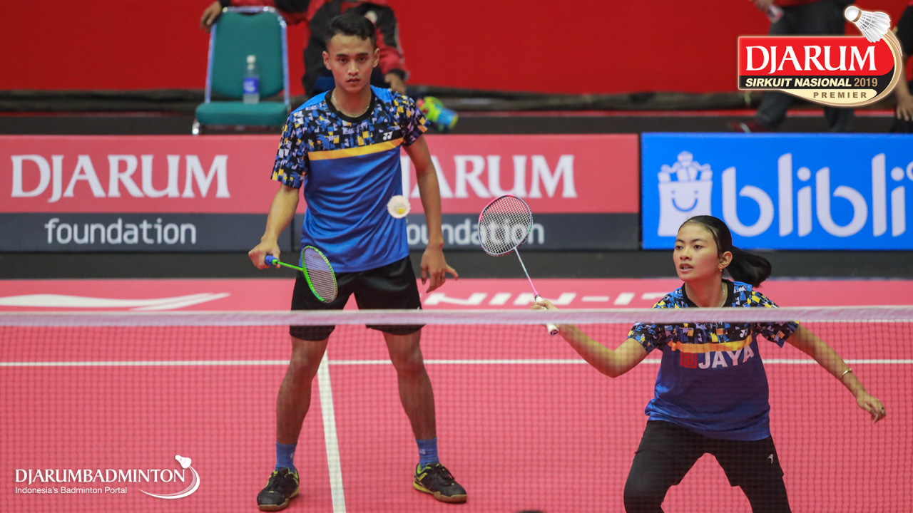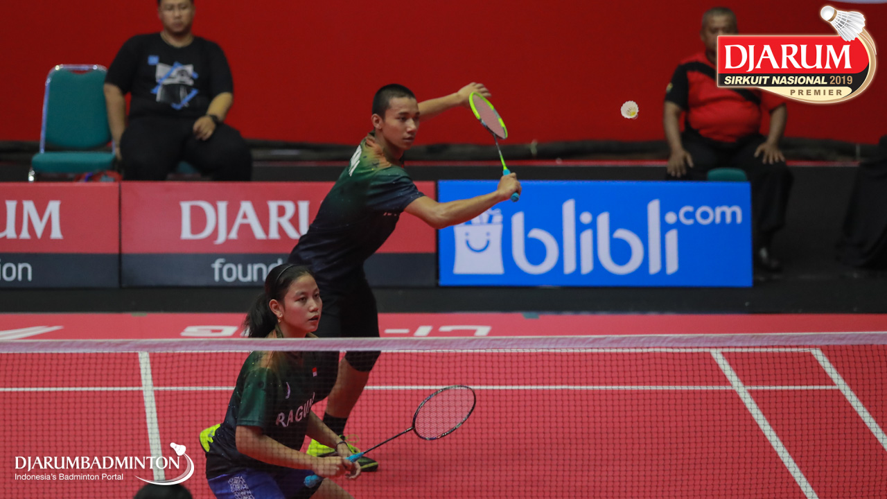Rizacho Azma Lukman+Agatha Sekar Kinanti Putri (Sekolah Khusus Olahraga Ragunan) melepaskan serangan