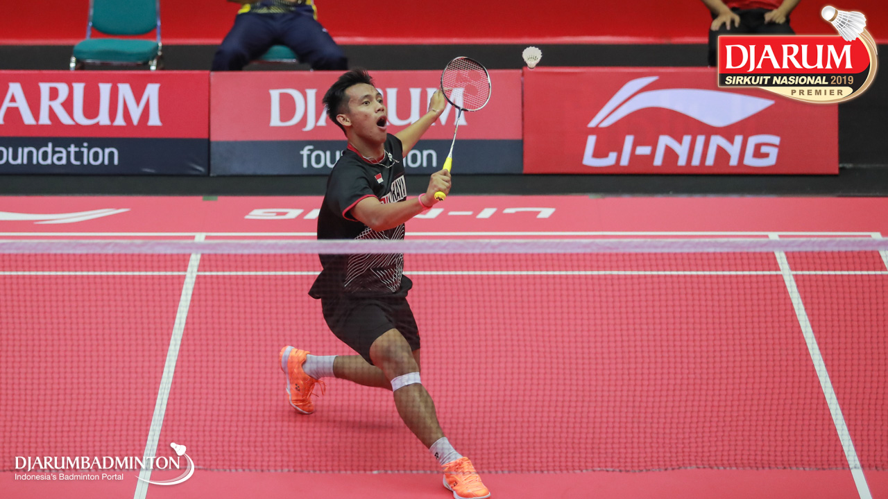 Panji Ahmad Maulana (Daihatsu Candra Wijaya) menyambut shuttlecock