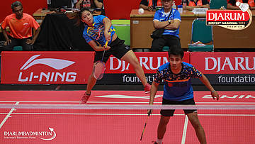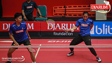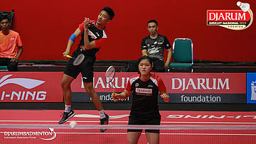 Dejan Ferdinansyah+Serena Kani (PB Djarum, Kudus) melepaskan serangan
