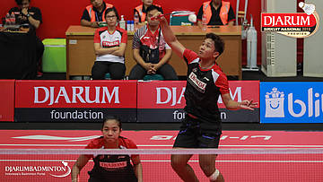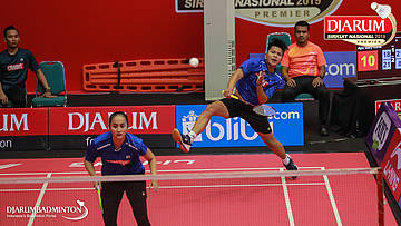 Hendra Gustiawan+Ayu Gary Luna Maharani (PB Djarum, Kudus) menyambar pengembalian