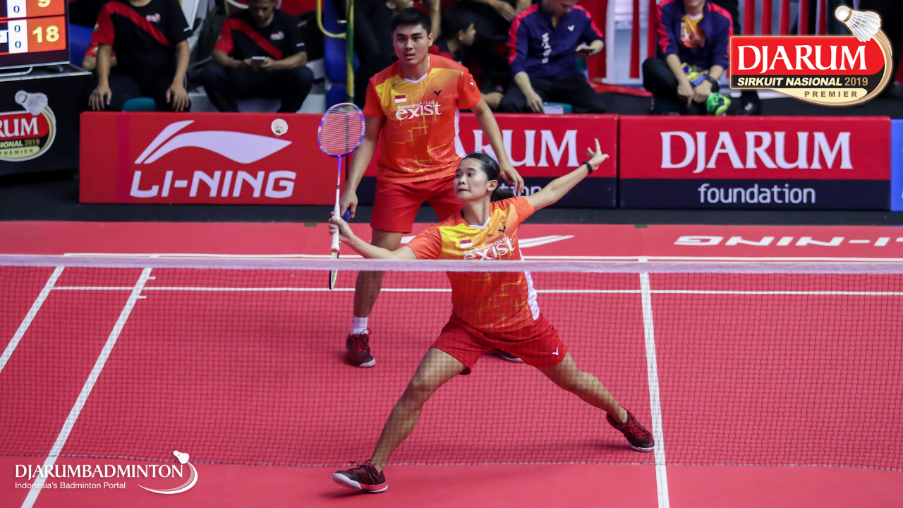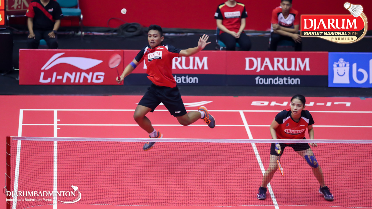 Arya Adi Saputra+Putri Larasati (Exist Badminton Club) melepaskan serangan