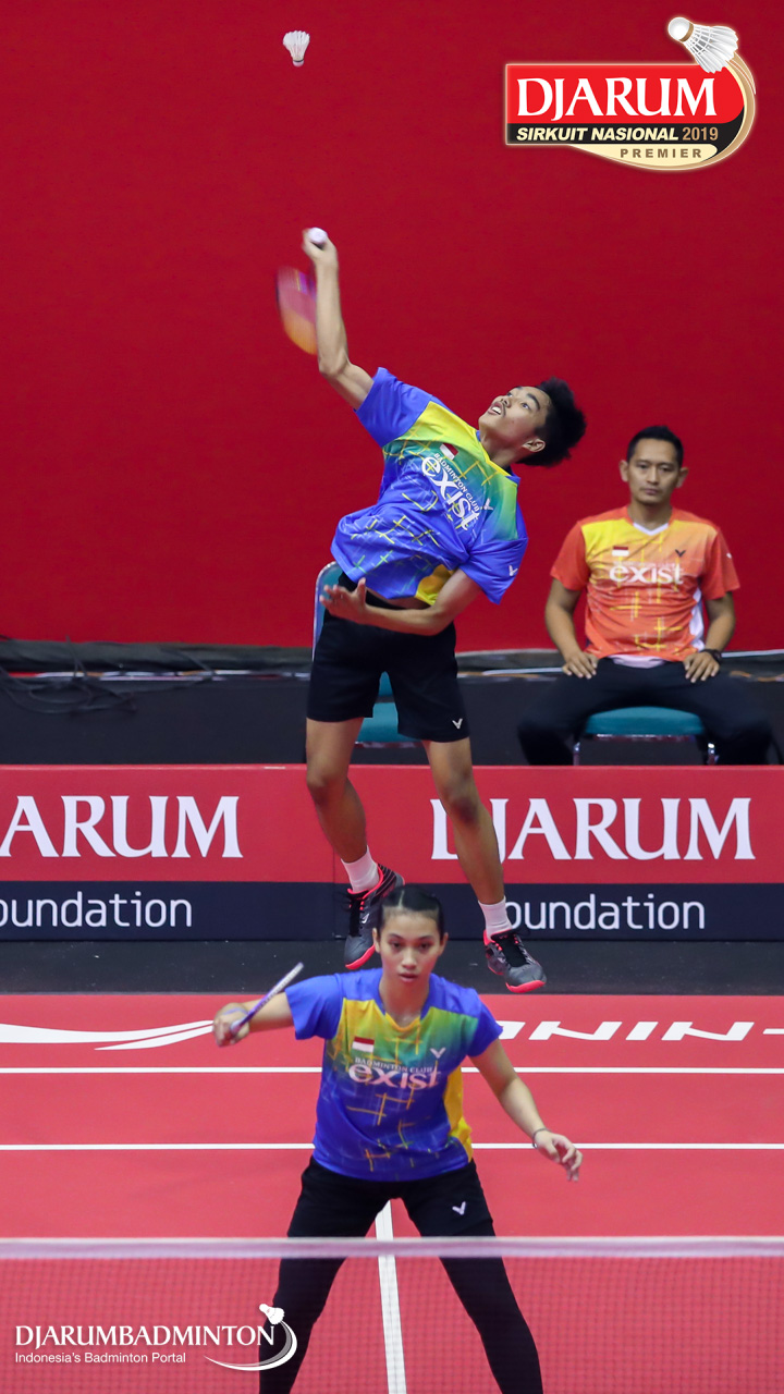 Muhammad Yusuf Maulana+Silvia Ratih (Exist Badminton Club) bersiap menyambar pengembalian