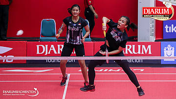 Amalia Cahaya Pratiwi+Febriana Dwipuji Kusuma (Pelatnas) melepaskan serangan