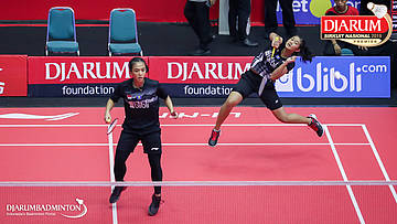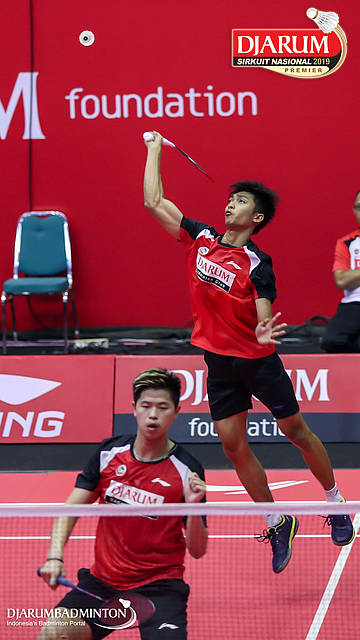Ivan Adi Cahyono+Vincentius Suwarland (PB Djarum, Kudus) menyambar pengembalian