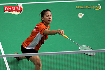 Lyanny Alessandra Mainaky (Putra Mainaky) mengembalikan shuttlecock