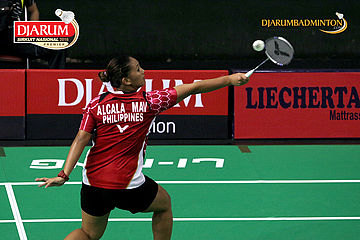 Malvinne Ann Venice (Philipina) mengembalikan shuttlecock