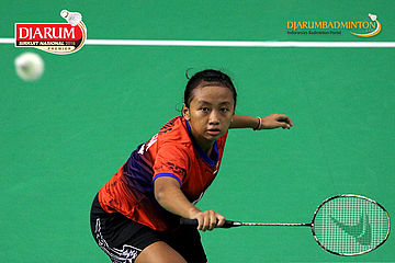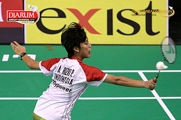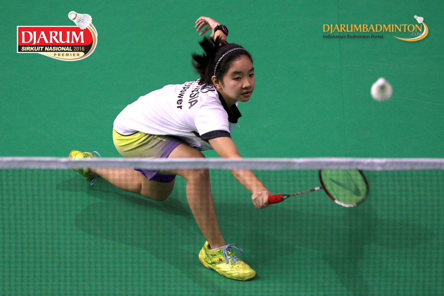 Savira Sandradewi (Djarum Kudus) melepaskan serangan
