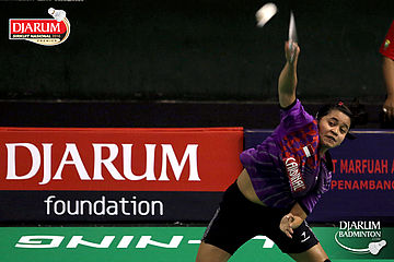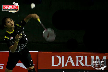 Silvi Wulandari (Djarum Kudus) melepaskan serangan