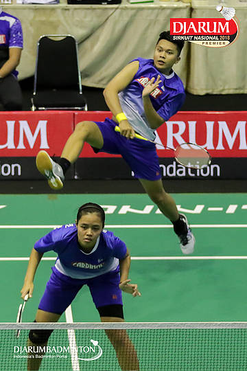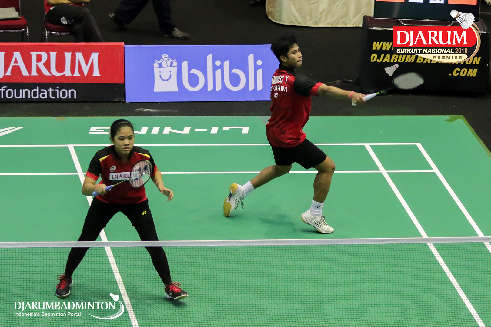Yoggi Pamungkas dan Fauzia Kartikasari (PB Djarum, Kudus) mengembalikan serangan