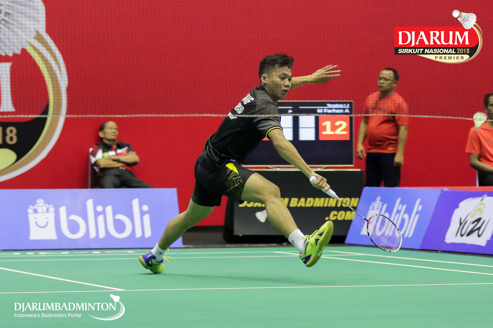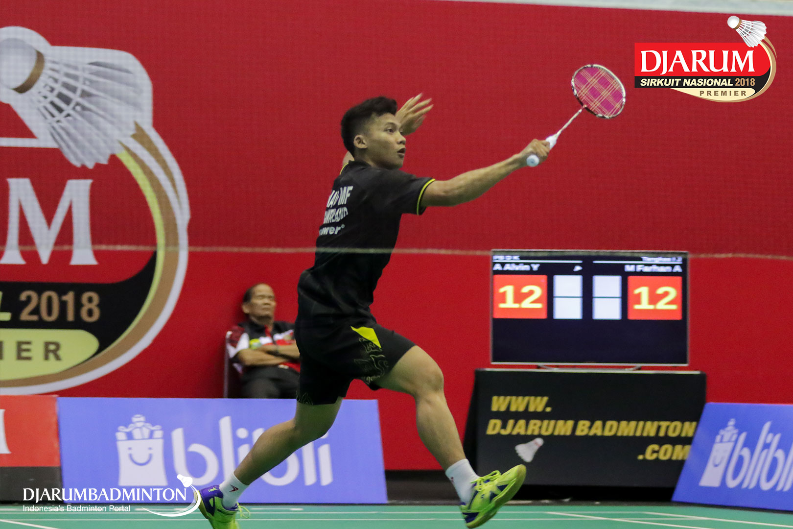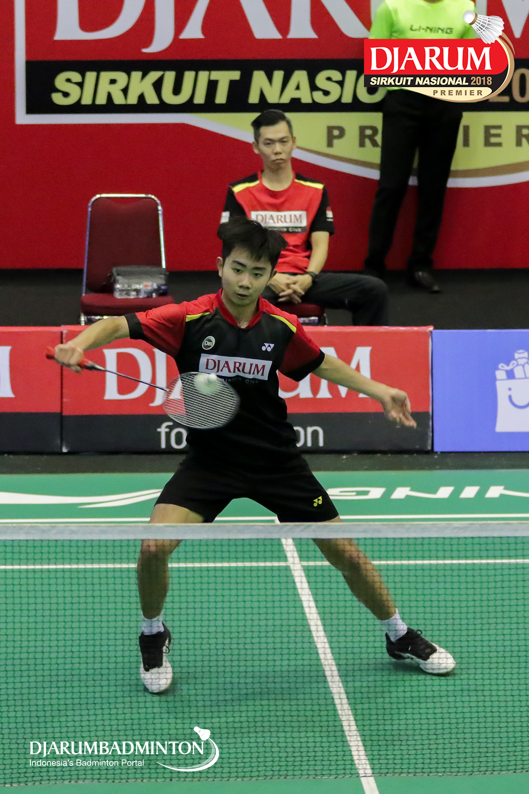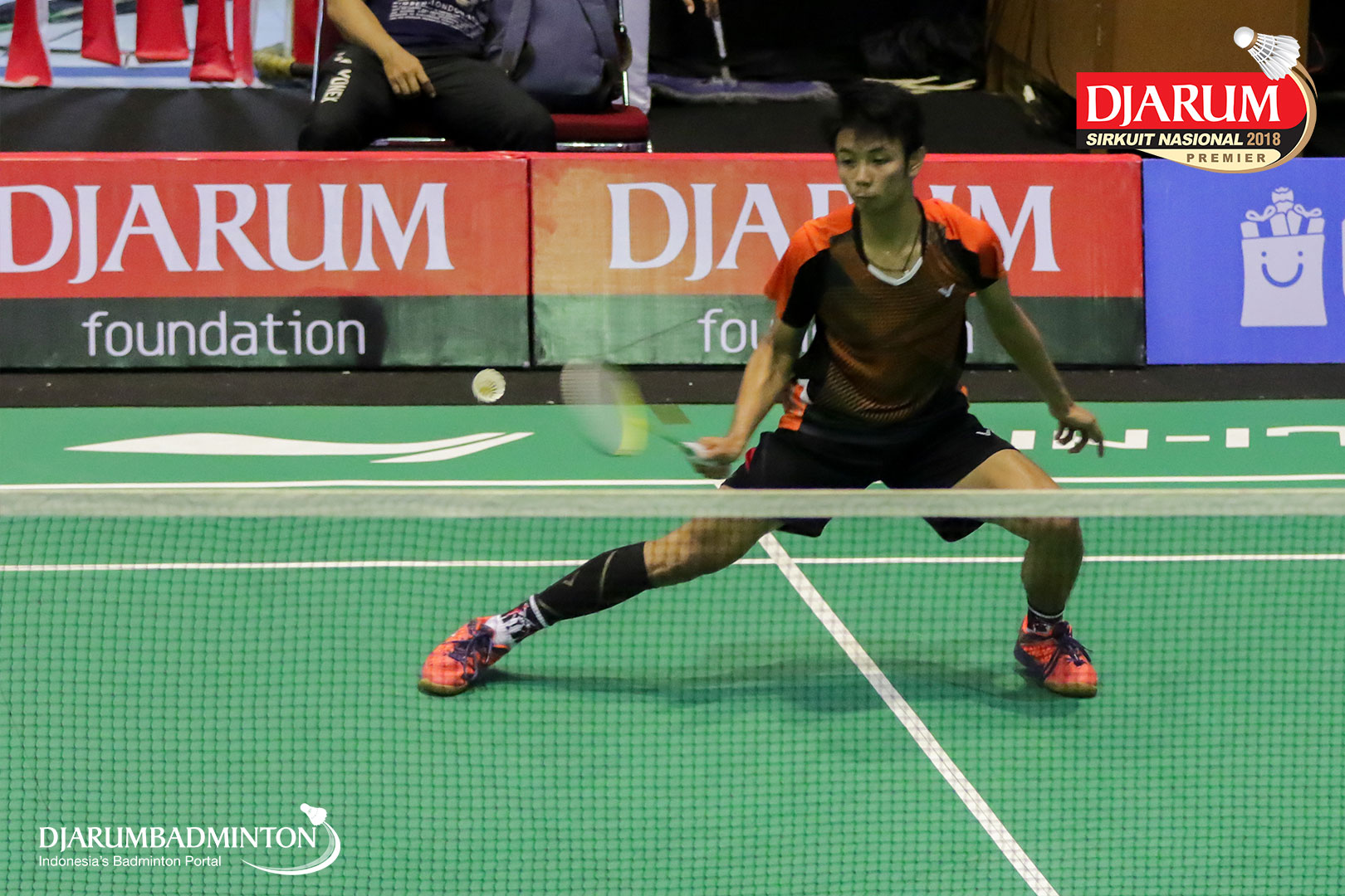 Alberto Alvin Yulianto (PB Djarum, Kudus) mengembalikan shuttlecock