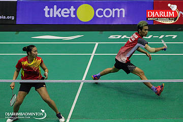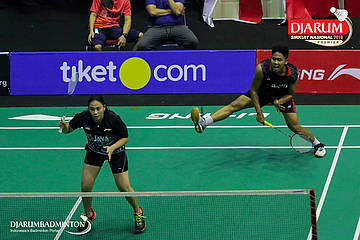 Crisandy Santosa/Melani Mamahit (Exist, Jakarta) gagal mengembalikan serangan