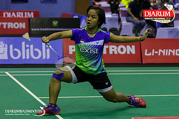 Yasnita Enggira Setiawan (Exist, Jakarta) bersiap menyambar pengembalian
