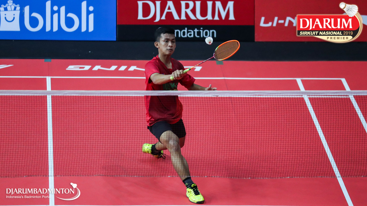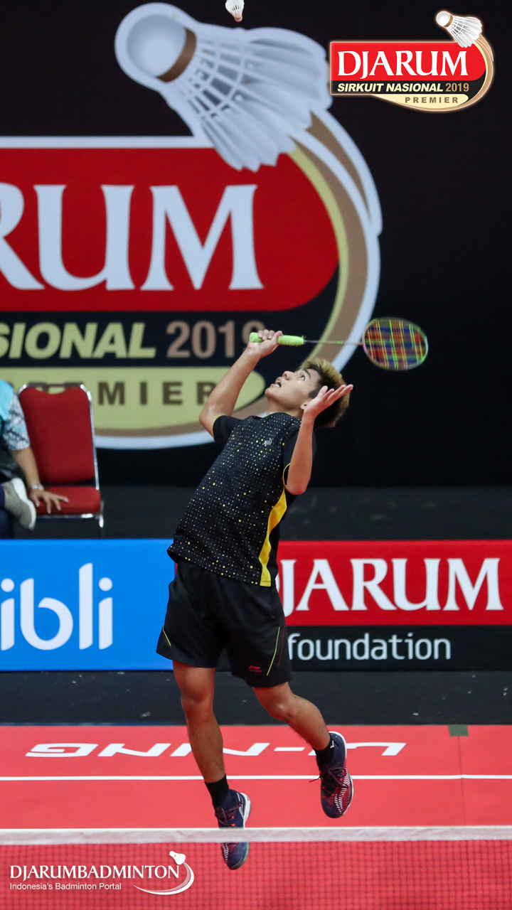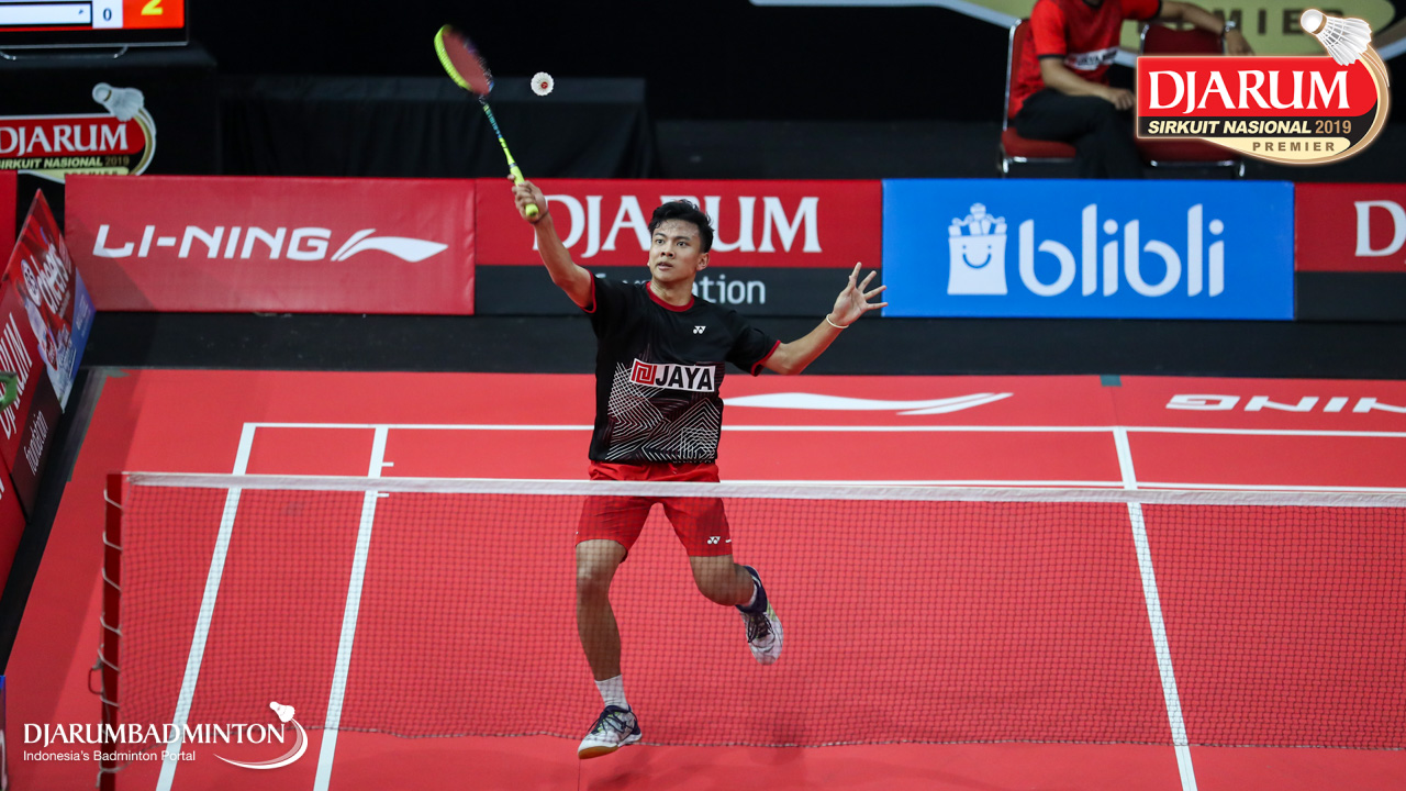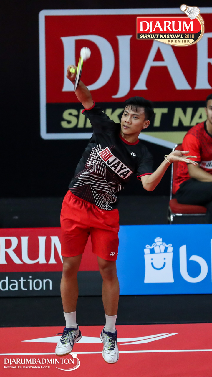 Mario Gondo Kusumo (Daihatsu Candra Wijaya) menyambut shuttlecock