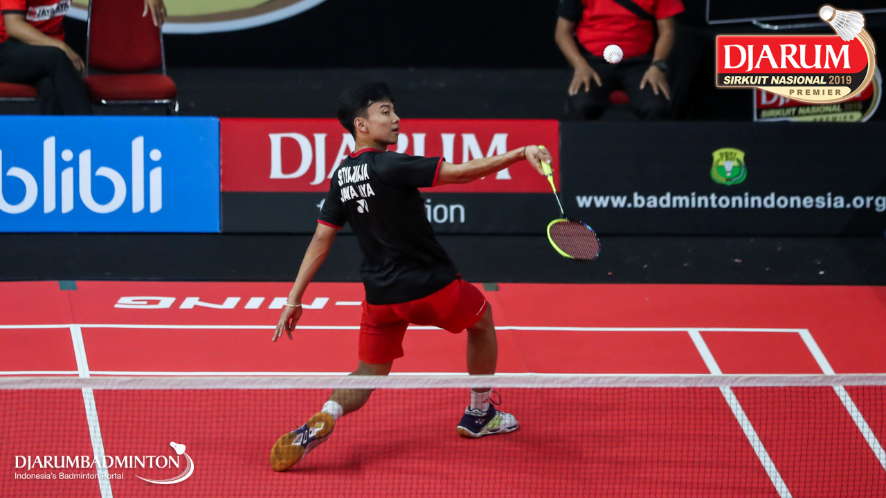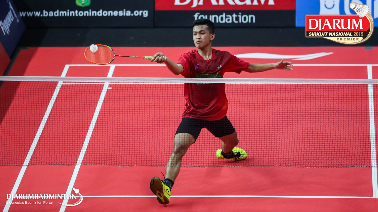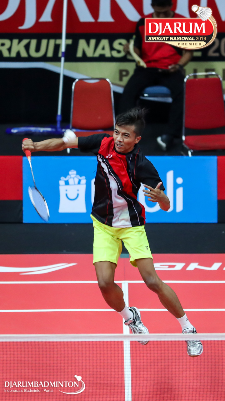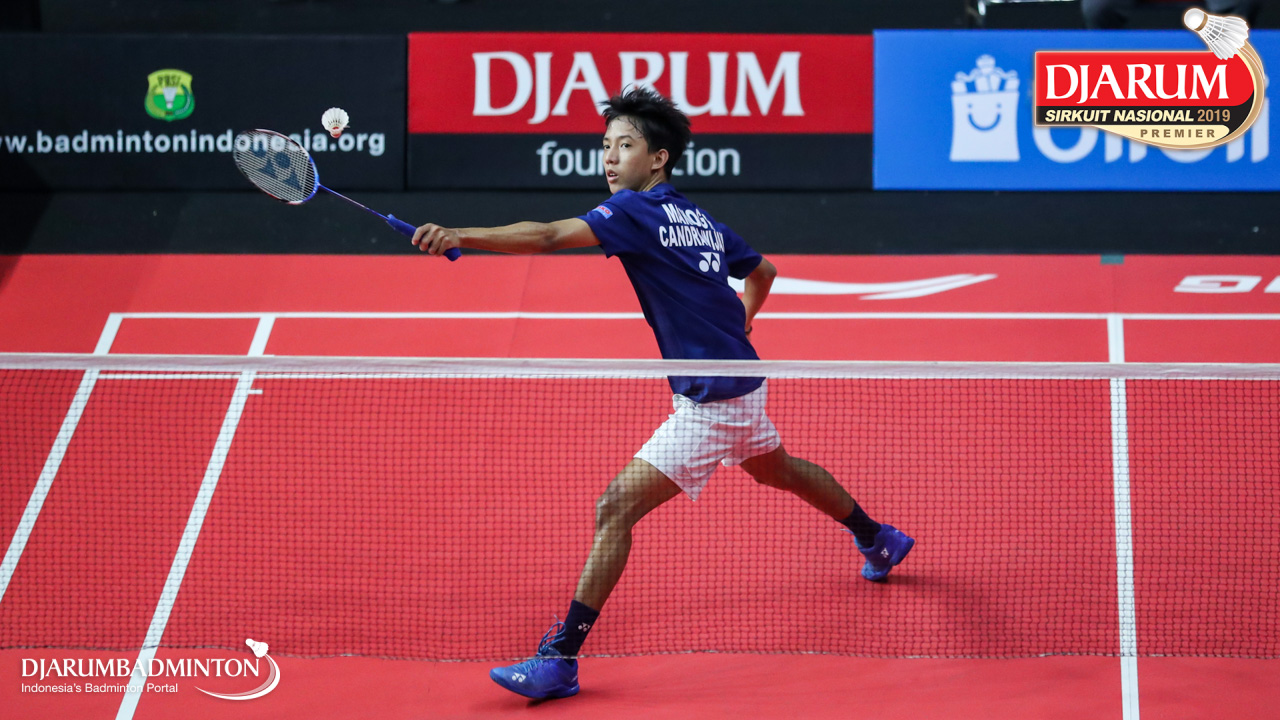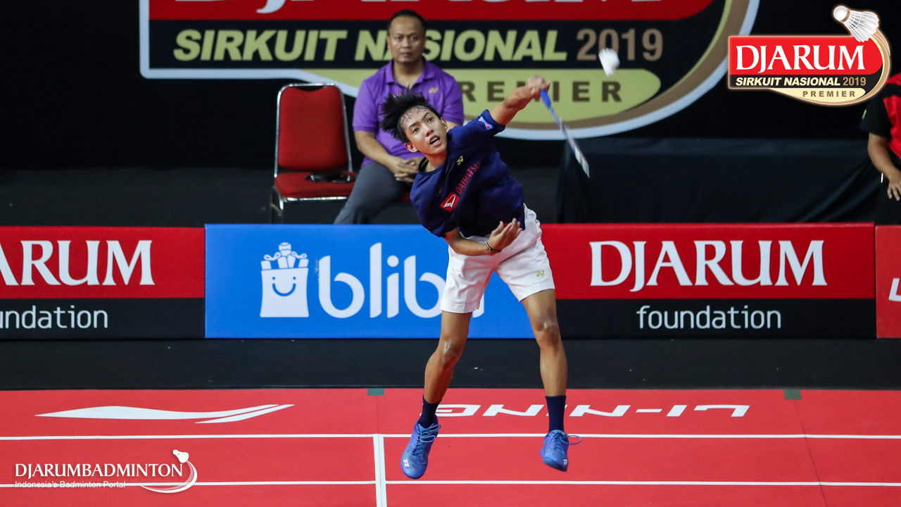 Mario Gondo Kusumo (Daihatsu Candra Wijaya) menyambut shuttlecock