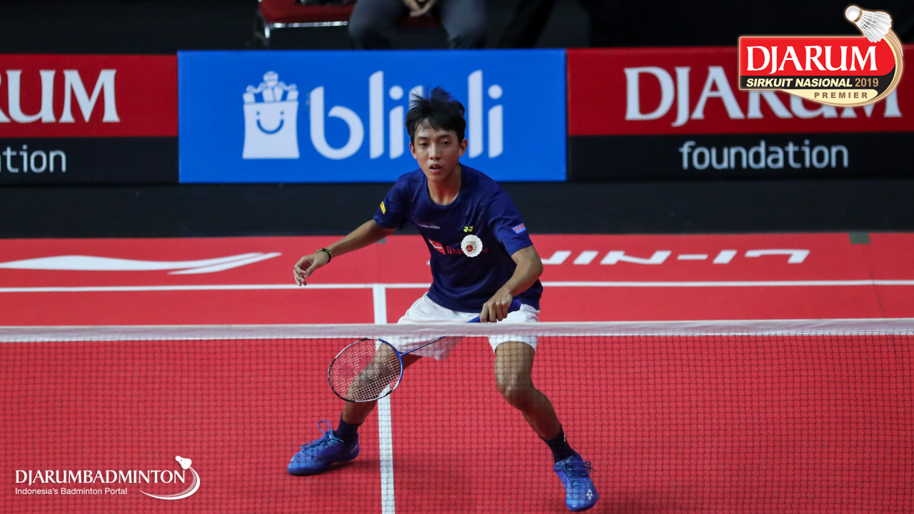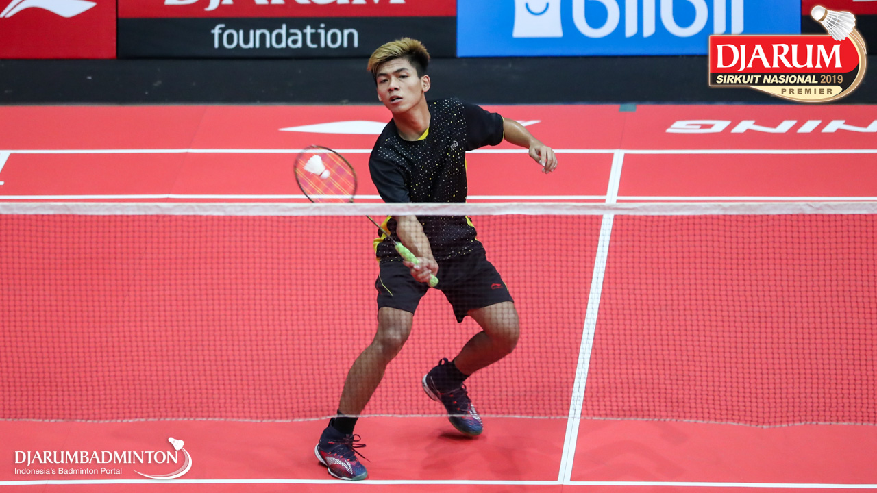 Mario Gondo Kusumo (Daihatsu Candra Wijaya) bersiap menyambut shuttlecock
