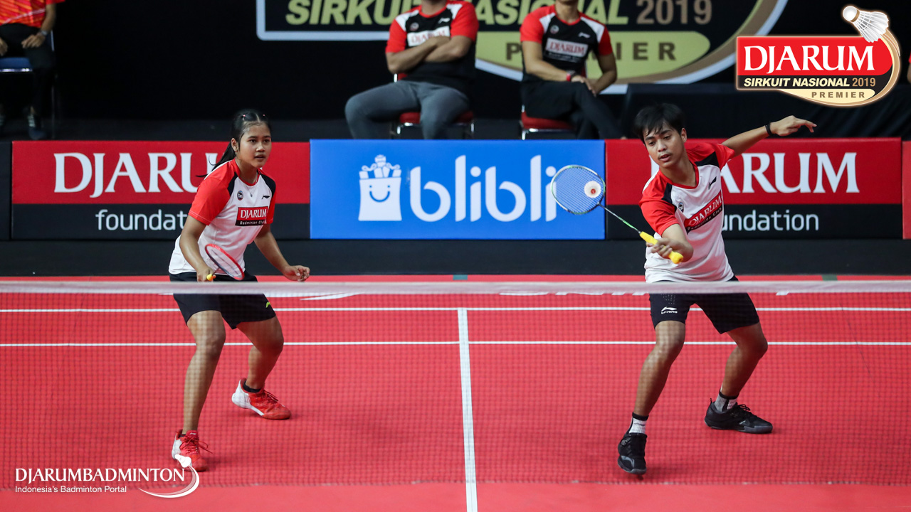 Rinaldhy Audi Fryzziana+Amanda Elwasti Handayani (PB Victory Bogor, Jaktim+PB AIC Badminton Academy) meleapskan serangan