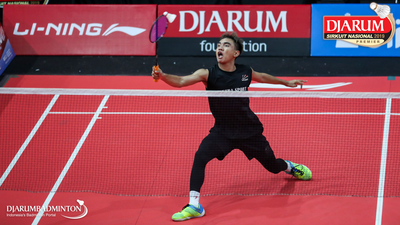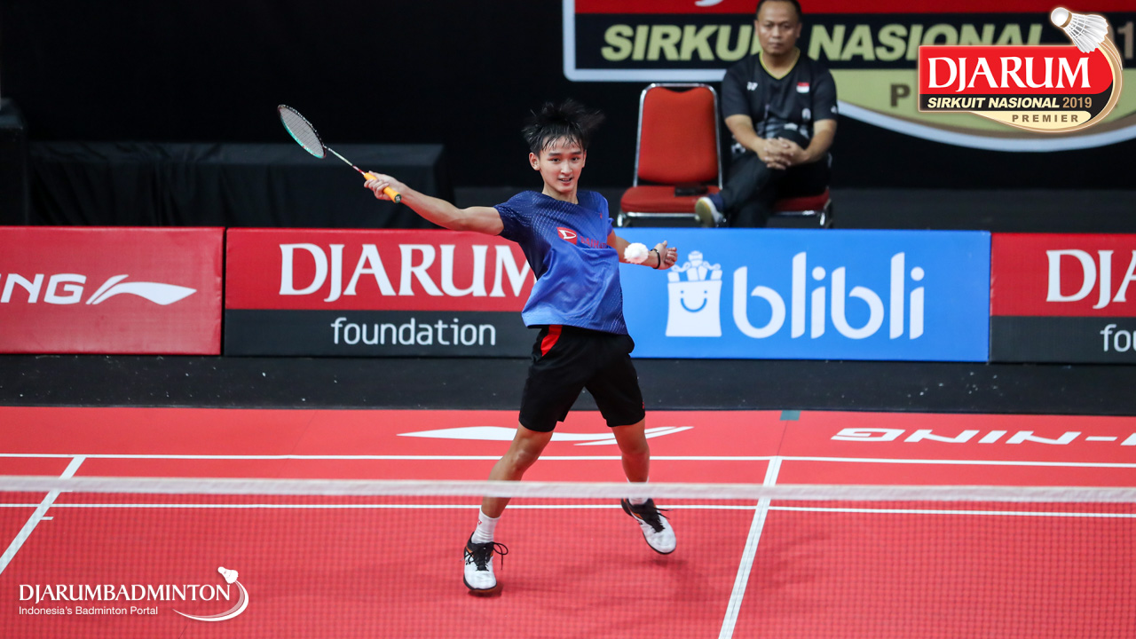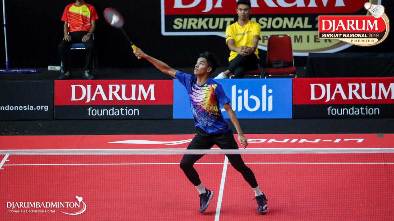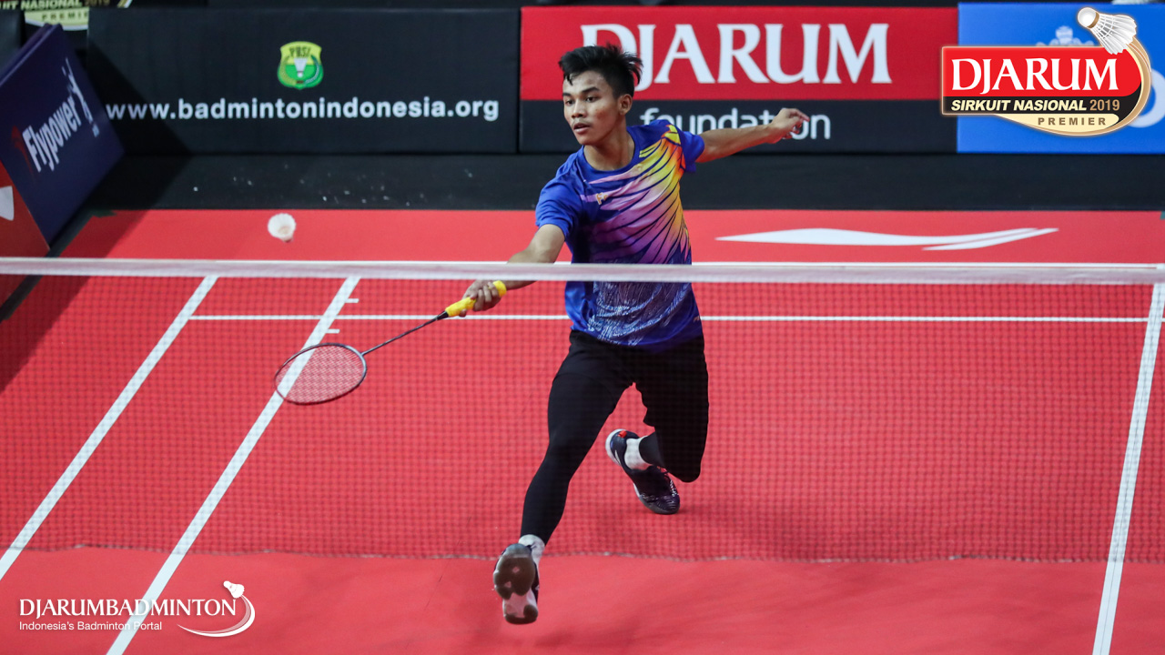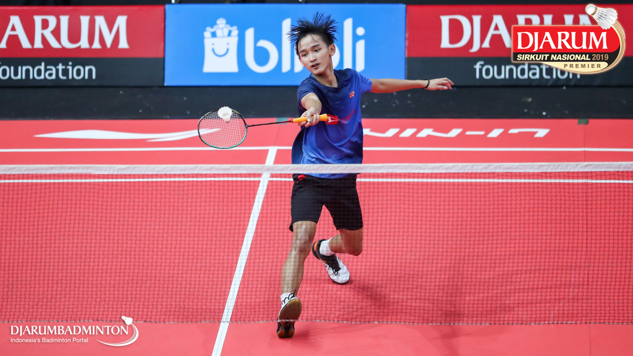 Dinar Taufiqul Hafizh (PB AIC Badminton Academy) menyambut shuttlecock