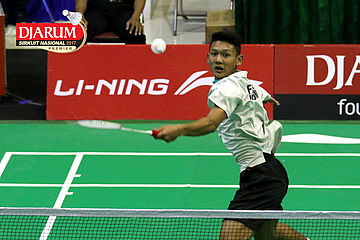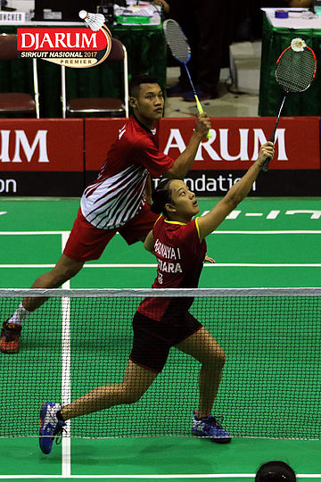 Daniel Marthin/Indah Cahya (Djarum Kudus) Mengembalikan Shuttlecock