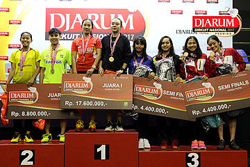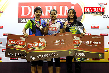 Dian Fitriani/Nadya Melati (Pertamina Fastron) Mengembalikan Shuttlecock