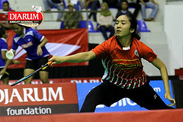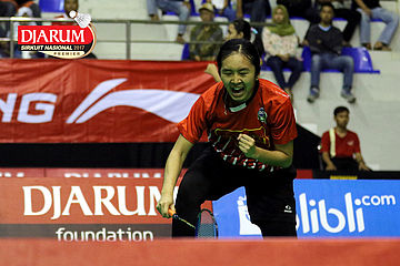 I Putu Pande Sheva/Fauzia Kartikasari (Djarum Kudus) Menyambar Pengembalian