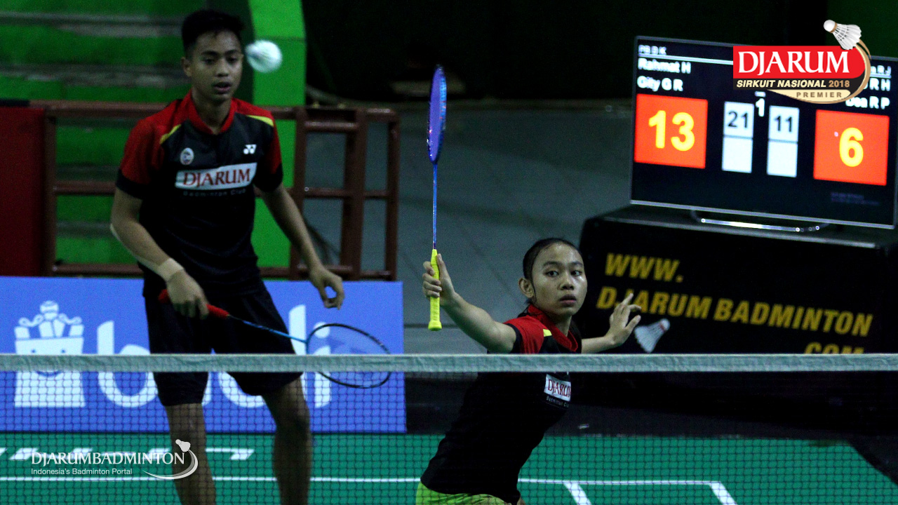 Rahmat Hidayat/Gity Gabriel Rambing (PB Djarum Kudus) Mengembalikan Shuttlecock