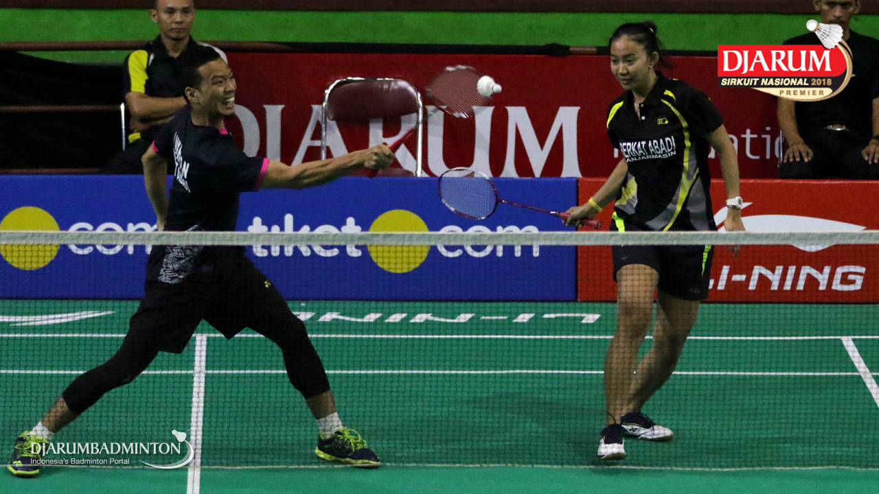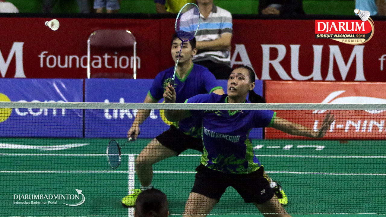 I Kadek Pande Dheva Brahmantya Putra/Sintia Dewi Yuliani (PB Djarum Kudus) Mengembalikan Shuttlecock