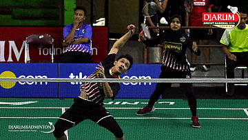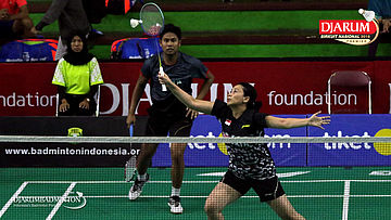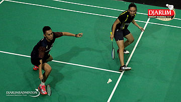 I Kadek Pande Dheva Brahmantya Putra/Sintia Dewi Yuliani (PB Djarum Kudus) Menyambar Pengembalian