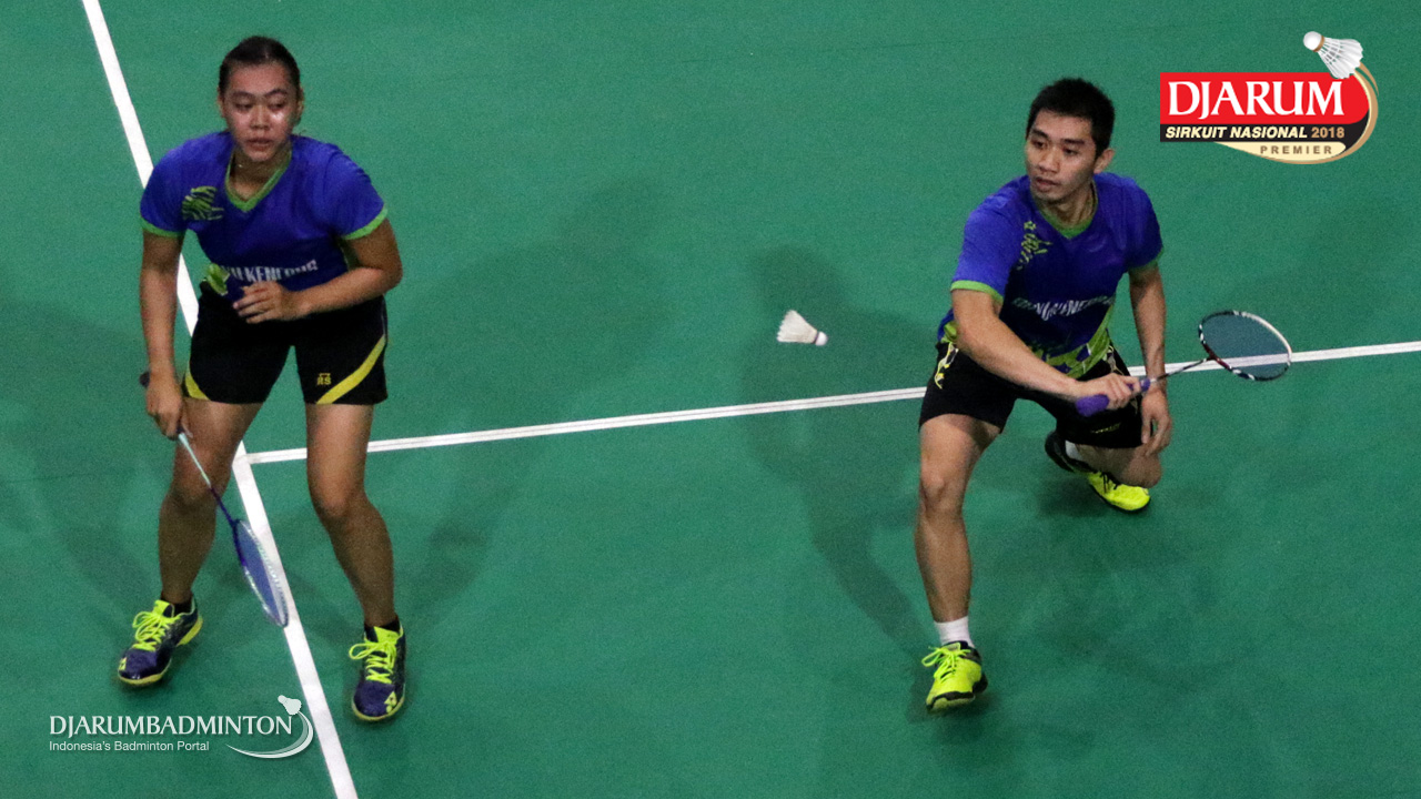 I Kadek Pande Dheva Brahmantya Putra/Sintia Dewi Yuliani (PB Djarum Kudus) Berusaha Menggapai Shuttlecock