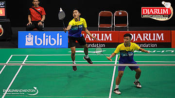 Fulgensius Nathaniel Gunawan+Muhammad Haidir Ali (Daihatsu Candra Wijaya) mengembalikan serangan