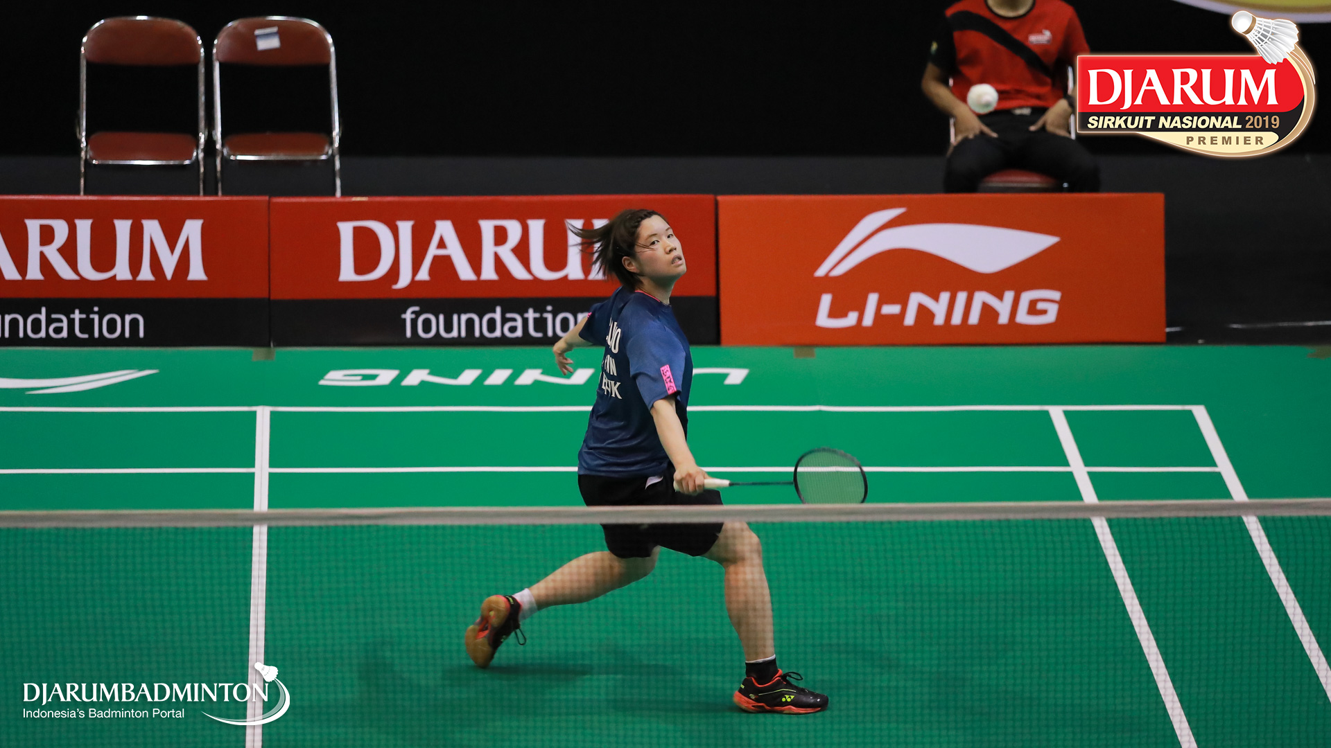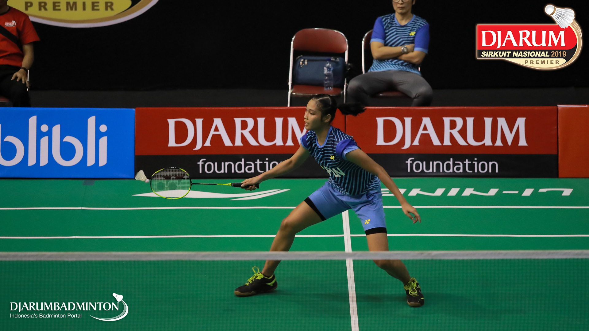 Ribka Gabriella (Sarwendah Badminton Club, Jaktim) mengembalikan serangan