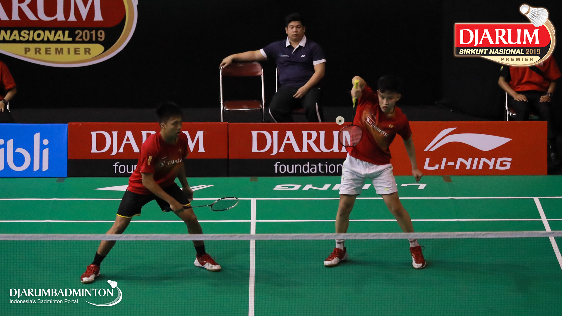 Fulgensius Nathaniel Gunawan+Muhammad Haidir Ali (Daihatsu Candra Wijaya) berusaha menahan serangan