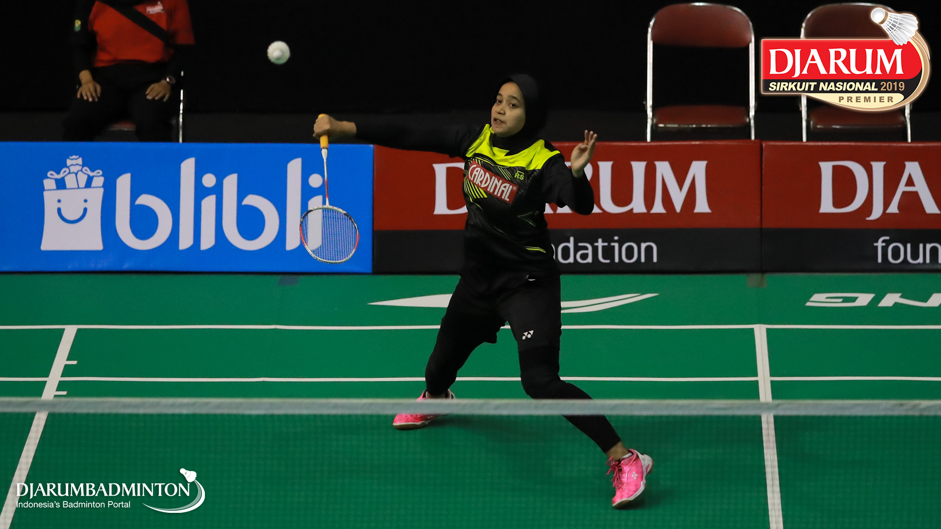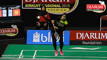 Elisabeth Purwaningtyas (Sangkuriang Graha Sarana PLN Bandung) menyambut shuttlecock