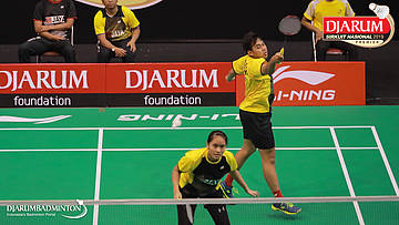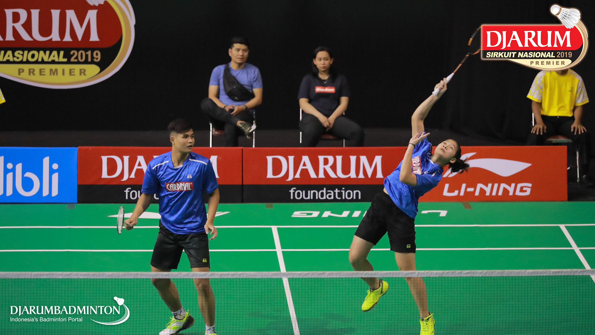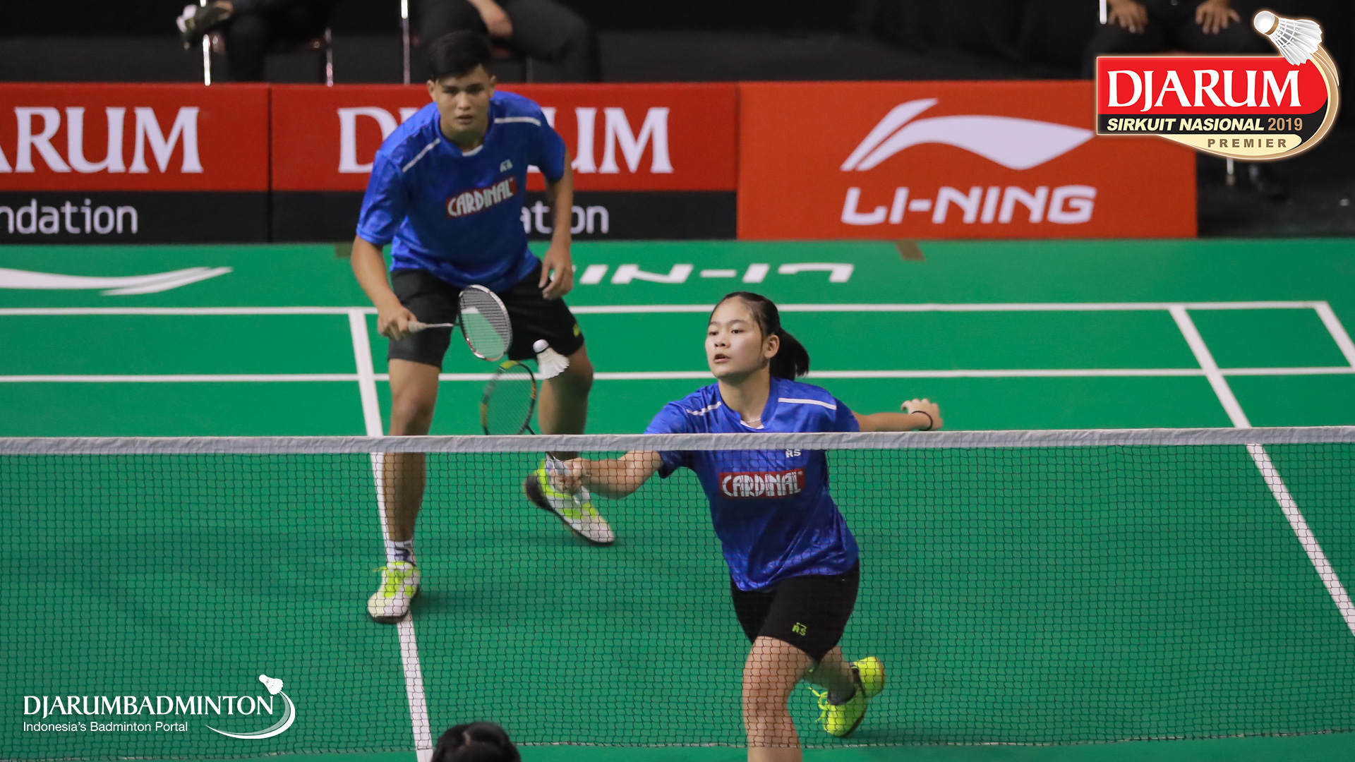 Yoggi Pamungkas+Aldira Rizki Putri (PB Djarum, Kudus) mengembalikan shuttlecock