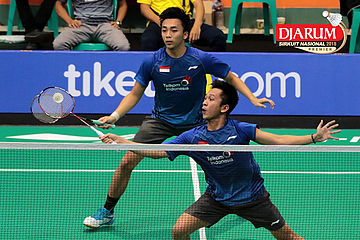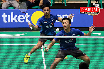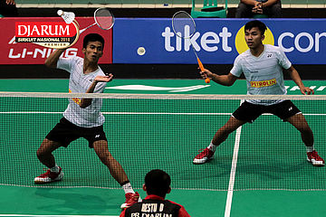 Habib Alfariz/Steven Henri Cornelis (Pusdiklat Telkom) Mengembalikan Shuttlecock