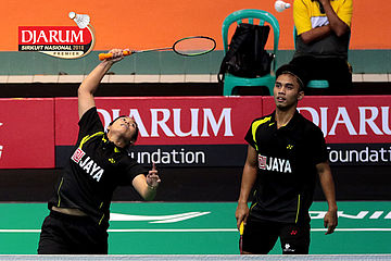 Rahmat Hidayat/Gity Gabriel Rambing (PB Djarum Kudus) Mengembalikan Shuttlecock