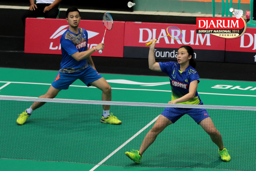 Lukhi Apri Nugroho/Ririn Amelia (Berkat Abadi/PB Djarum Kudus) Mengembalikan Shuttlecock