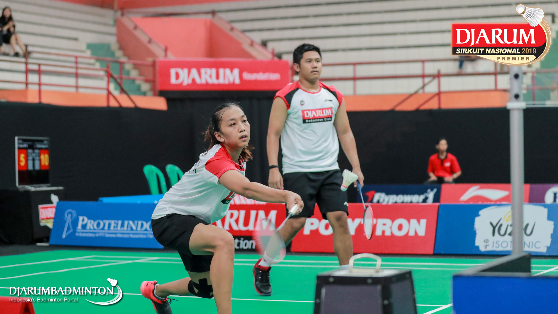 Nugroho Andi Saputro+Tiara Rosalia Nuraidah (Halim, Jakut+Mutiara Cardinal, Bandung) bersiap menghadang serangan
