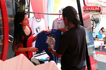 Salah Satu User Sedang Melayani Pengunjung Booth Ofisial Merchandise Djarum Sirkuit Nasional Premier Li-Ning Jawa Timur Open 2016.