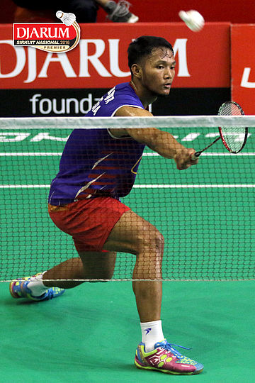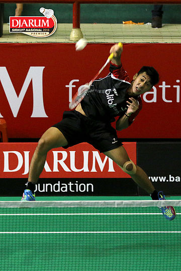 M. Aldo Apriyandi (Djarum Kudus) Melepaskan Smash.